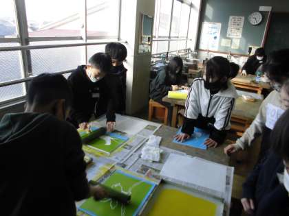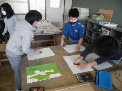 図工では彫り進み版画に取り組んでいます。