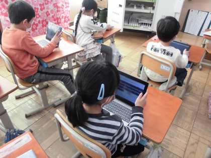 タブレット端末で,考えを整理してみんなで共有しました。