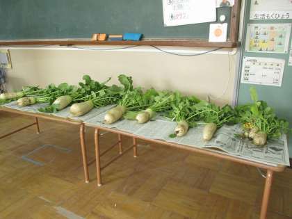 若草の畑では,大根を育てています。「大きくなってね。」と言いながら毎日水やりをしてきました。