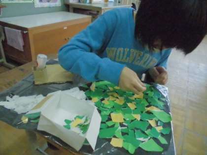 葉は,色をよく見ながら,折り紙の色を使い分けて仕上げていきました。