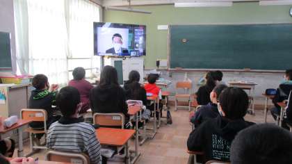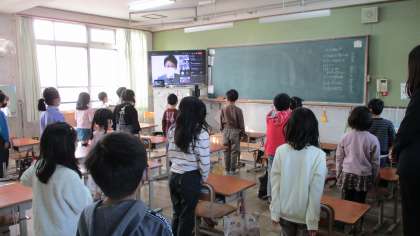 お話では,2学期の行事や学習での様子を写真とともにふり返りました。