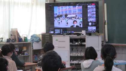 マスクをしたまま小さな声ですが久しぶりに校歌を歌い,校長先生のお話を聞きました。