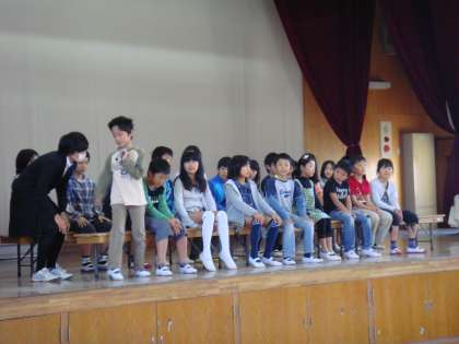 低学年のクラスに代表委員会で決まったことを伝える代表委員代理の、