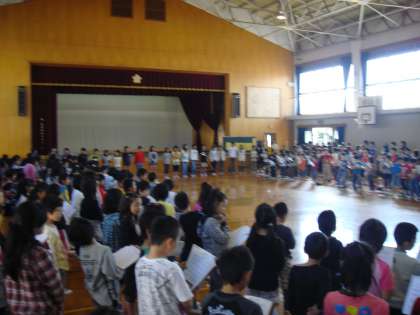 最後に、音楽委員会と全校児童で、『音楽のおくりもの』を練習しました。