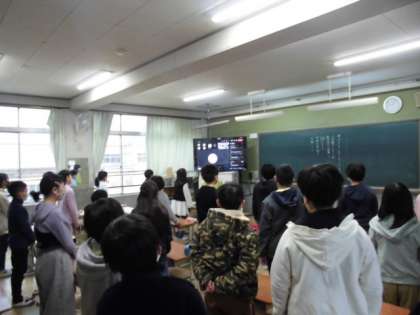 校長先生から,干支にまつわる話や,学校の桜の木の様子の写真を通して,『エネルギーをたくわえよう』という話がありました。
