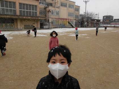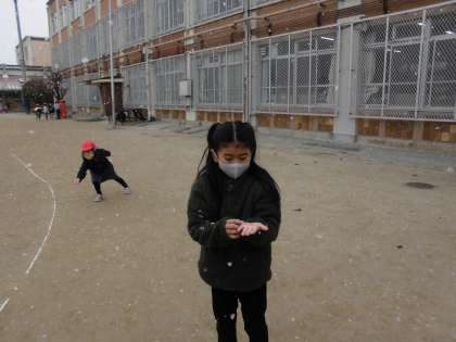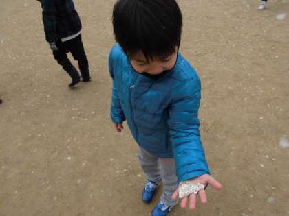 寒い中でしたが,めったに降らない雪を楽しんでいました。