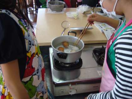 ゆで卵と正しいお茶の入れ方の実習を行いました。