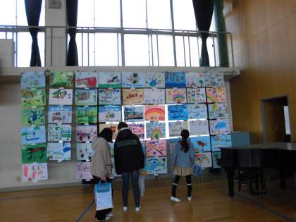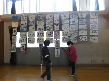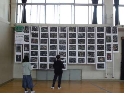 図工展が開催されています。5年生は彫り進み版画を展示しています。今日は鑑賞をしました。色づかいがきれいな作品,力強い作品,形が美しい作品,アイデアがおもしろい作品といったように視点を決めて鑑賞をしました。どの学年も力作ぞろいで楽しく鑑賞することができました。じっくりと見入る5年生の姿がありました。今回は保護者の皆様に見ていただくことができず残念でした。また後日じっくりとご覧ください。