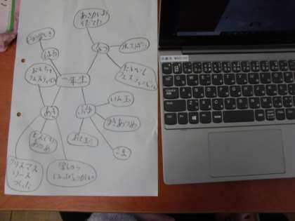 1年生の学校生活を思い出して,思考ツールをつかって,整理しました。