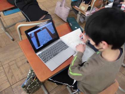 ワークシートに考えをまとめたものをGIGA端末で写真を撮り,