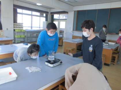 ビーカーに水を入れて火にかけ,水の様子を観察しました。