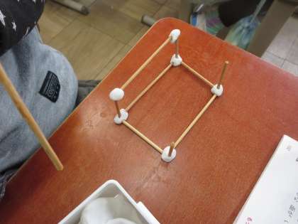 算数の「はこの形」の学習で,竹ひごを使って箱の形を作りました。できた子から,他の図形も作ってみると・・・