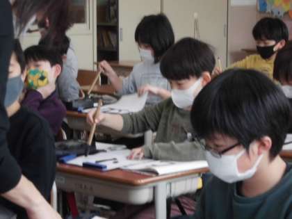 0314 3年生 書写 公開日 2022/03/15 更新日 2022/03/15 3年生 3年生の書写もいよいよまとめの時期です。 今まで学んだことを確かめながら,「光」という漢字を書きました。 書きながら,「始筆がだめだったな。」や「はねがうまくいった!」など,自分の書いた字に向き合っていました。