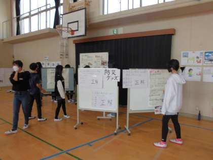 0314 6年 総合的な学習の時間 公開日 2022/03/15 更新日 2022/03/15 6年生 明日の発表に向けて体育館で各ブースを準備しました。 異学年の友だちに直接説明をしたり,クイズをしたりすることができないため全校の友だちにビデオを見てもらい当日は見学をしてもらいます。