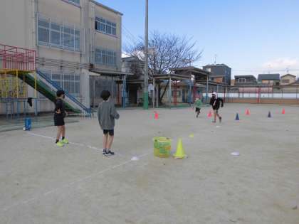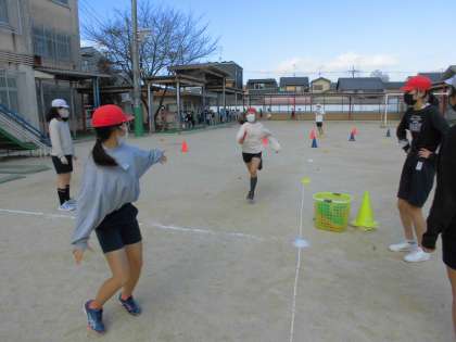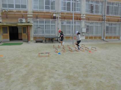 0315 6年 体育 公開日 2022/03/16 更新日 2022/03/16 6年生 今日は,障害物リレーをしました。あせらないでミニハードルからドリブルをしながらコーンを回ったり,バトンパスの代わりに上手にボールを投げたりと楽しんで活動しました。