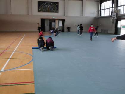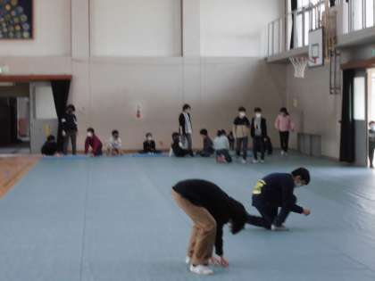 6校時に卒業式の式場準備をしました。今年も感染拡大防止対策のため,卒業式に5年生は出席することができません。その分,心をこめて一生懸命式場の準備をしました。フロアのシート敷き,ステージのふき掃除,椅子並べ,会場周りの清掃等,みんなで分担しながら頑張りました。来年度はいよいよ最高学年です。今日のようにみんなで力を合わせて何事にも一生懸命取り組んでほしいと思います。卒業式当日は,家で6年生の卒業をお祝いしましょう。