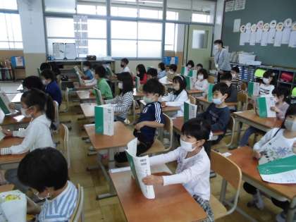 0509 1年生 音読がんばっています 公開日 2022/05/10 更新日 2022/05/10 1年生 今日の国語の時間の様子です。4月の下旬から音読の宿題がはじまりました。 おうちで何回も何回も練習している人もいて,みんなよくがんばっています。 今日は,授業のはじめにみんなで声を合わせて音読しました。 元気よくはきはきと読む声が教室に響きました。