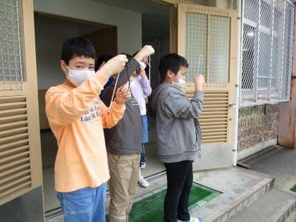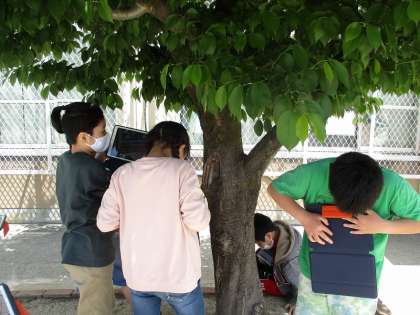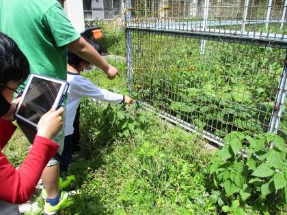 0516 若草学級 理科 公開日 2022/05/17 更新日 2022/05/17 若草学級 3年生から6年生は,理科の学習をしています。 【季節の生き物について調べよう】 「気温は…22度だね」「プリントに記録しよう!」 「草の下にテントウムシの幼虫がいるよ!」 「桜は花がなくなったけど,葉っぱが増えてきたね」 学校の色々なところで春の生き物を見つけることができました。 見つけた生き物はタブレット端末を使って写真を撮り,教室でみんなで見せ合って交流しました。