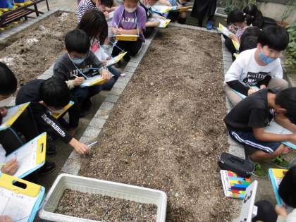 0517 3年生 種まき後… 公開日 2022/05/17 更新日 2022/05/17 3年生 ゴールデンウィーク直後にまいた種が芽を出し,先週観察をしました。 ホウセンカとヒマワリどちらも2まいの葉(子葉)が出ていて 色や形などじっくり観察できました。