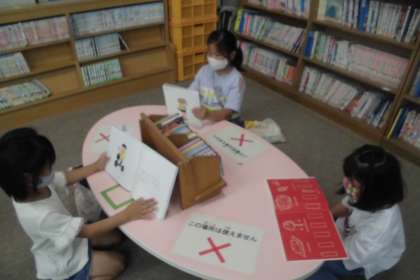 今日は,学校図書館で,司書の先生に図書館でのルールや,