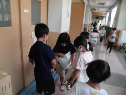学校探検をしました。お兄さん,お姉さんとして,1年生のお見本となるように行動しようと本番前から張り切っている姿が見られました。仲も深まったようで1年生が困っていると手伝いをしてあげています。