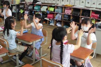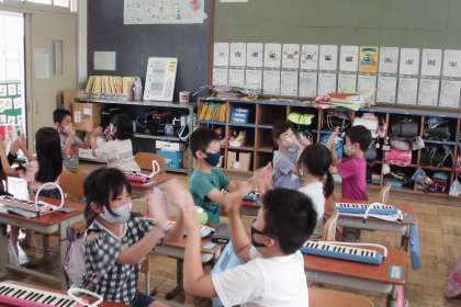 音楽の学習で2拍子と3拍子の曲に合わせて