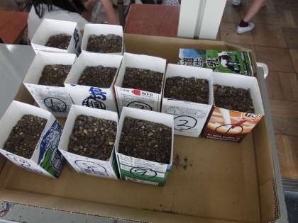 しばらくは牛乳パックに入れて発芽するのを待ちます。