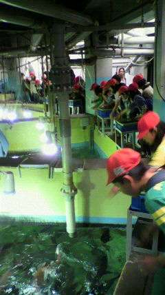 マリンランドに到着し,ペンギンにエサをあげたり,水族館の見学をしています。水族館では,バックヤードの見学もさせていただきました。