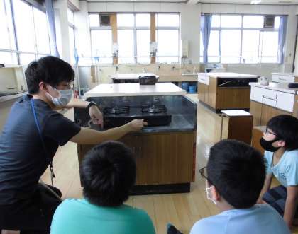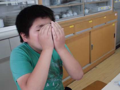 ガスコンロを使用する場面では,元栓のつなぎ方から始めました。普段,意識する機会がないせいか,子どもたちはこわごわとした様子。おっかなびっくりで確認作業を行います。