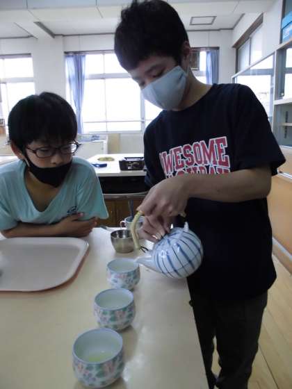 家庭科「私の生活,大発見」で,お茶を入れる学習を行いました。