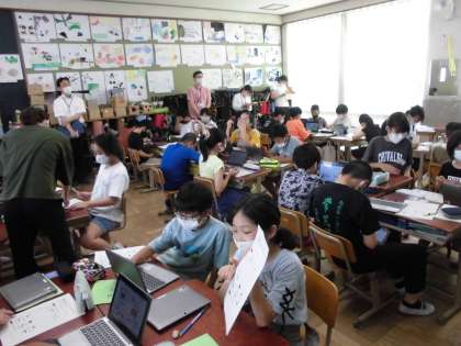 授業公開学級の子どもたちは,中学校の先生方の視線に少しドキドキしながらも,いつもどおりしっかりと学習に取り組んでいました。