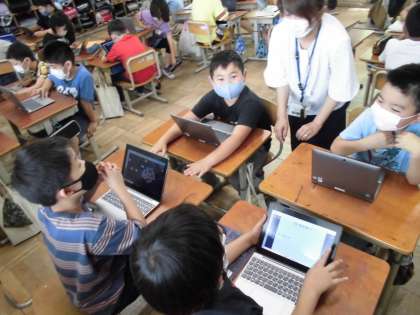 本日,大淀中学校の先生方が小学校の授業参観に来られました。