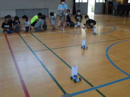 風の強さによって車の進み方はどうかな?事前に予想したことを確かめたり,新たに気づいたことを伝え合ったりすることができました。