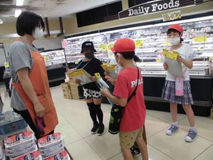 「スーパーマーケットにどうしてお客さんがたくさん来るのか」「お客さんのためにどんな工夫をしているのか」を調べました。