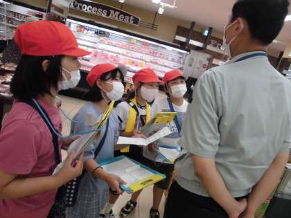 今日は社会科の学習でスーパーマーケット見学へ行きました。