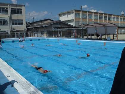 とてもいいお天気の中,水泳学習を行いました。