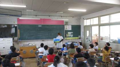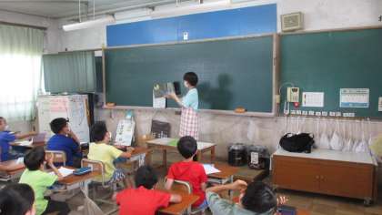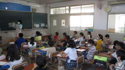 朝学習の時間によんでよんさんの読み聞かせがありました。 子ども達は、静かにお話に聞き入っていました。