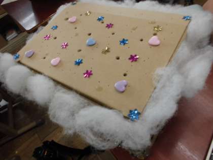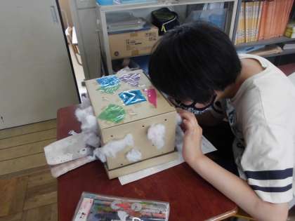段ボール箱に穴をあけて,差し込む光を生かして,思いついたことを楽しく表しました。