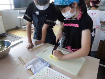 調理用具の扱い方を確認し,調理の手順を確かめて,スタートです。