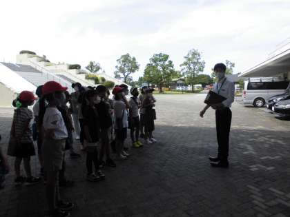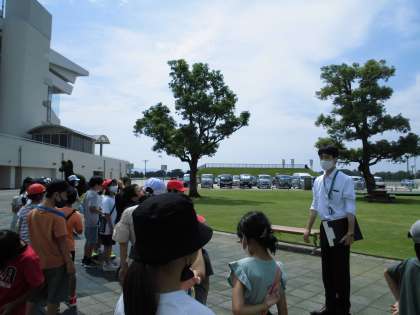 0721 3年生 JRA見学 公開日 2022/07/21 更新日 2022/07/21 3年生 淀の校区探検第3弾はJRA見学です。 工事中にも関わらず,親切にゲートや館内,馬場を案内して頂きました。 様子を見学したり,説明を聞いたり,気になることをその場で質問したりしながら過ごしました。 さらに知りたいことがたくさん見つかりました。