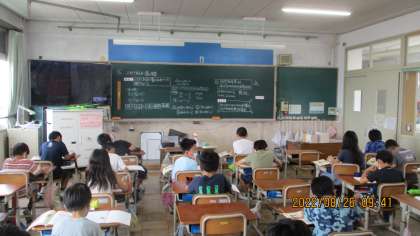 0826 4年生 算数 公開日 2022/08/26 更新日 2022/08/26 4年生 2桁でわるわり算のひっ算の学習が始まりました。 今日から、学年を3つのグループに分けて、少人数で学習を進めていきます。