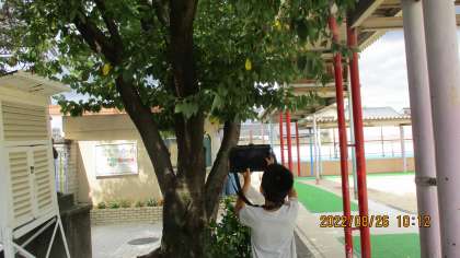 季節と生物の学習の様子です。 桜やツルレイシの様子をGIGA端末を活用して記録しています。