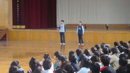 今日の児童集会では、保健委員会と計画委員会からのお知らせがありました。