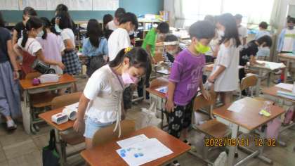 夏休みの自由課題の作品鑑賞会をしました。 今回は、力作ぞろいで、楽しく鑑賞をしていました。