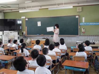 朝学習の時間に,よんでよんの方に来ていただき,読み聞かせをしてもらいました。