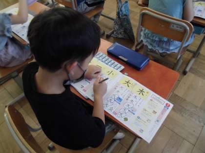 また,これまでの文字の学習と同じように,正しい姿勢で書くことも意識しています。
