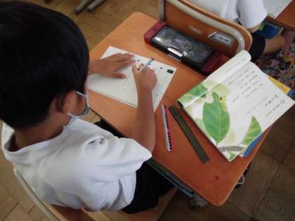 0907 1年生 国語 公開日 2022/09/07 更新日 2022/09/07 1年生 「やくそく」の学習が始まりました。 単元の最後には,登場人物のあおむしやおおきな木になりきって音読をします。 そのために,物語の内容をこれから詳しく読んでいきます。 お家で音読をする時には,物語について少しふれていただけるとうれしいです。
