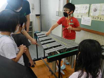 「鉄琴は、ペダルを踏むと音が伸びるねんで。」