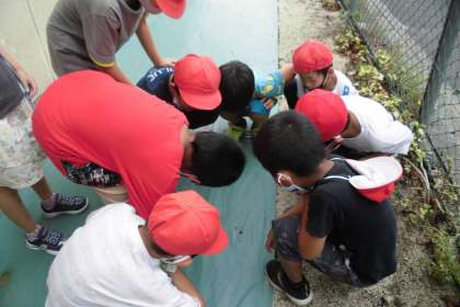 生活科の「小さな友だち」の学習で、学校にいる虫を探しに行きました。