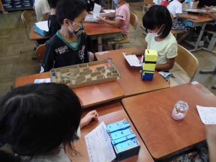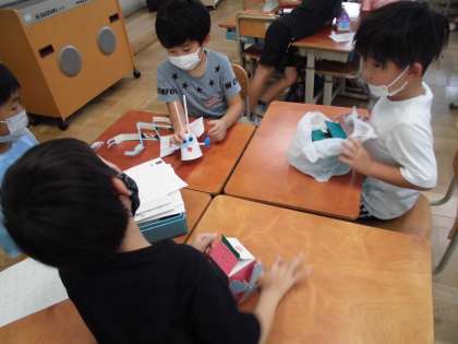 夏休みの宿題で作った自由工作の発表会をしました。